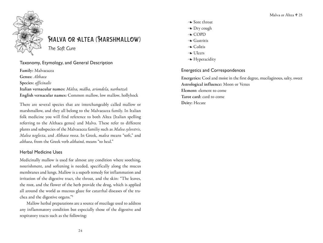• Features a detailed materia medica of culturally significant plants, sharing each plant’s history, mythology, and both practical and magical uses.