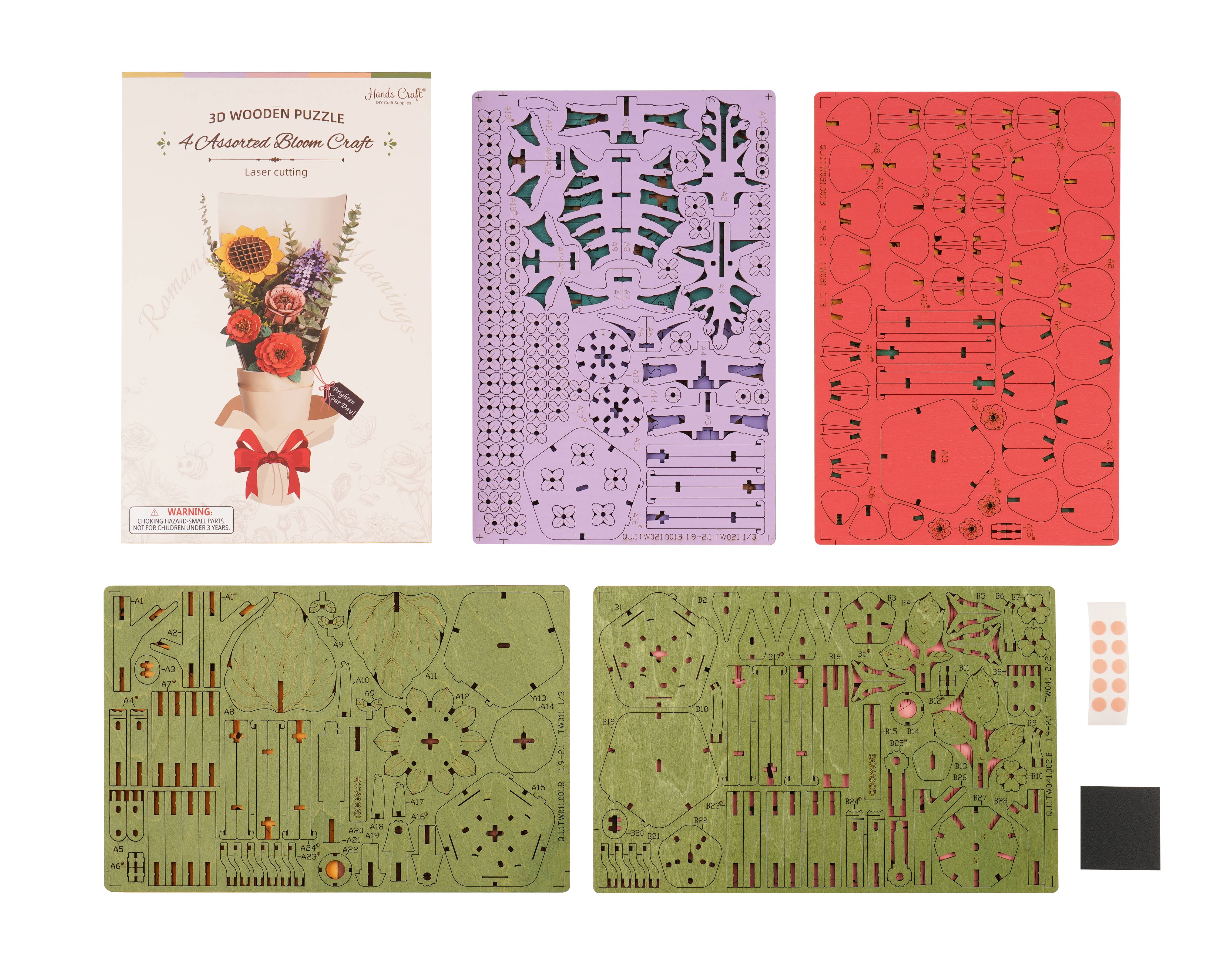 Elevate your inventory with a sophisticated twist on the traditional bouquet. The 3D Wooden Flower Bundle combines the intricate artistry of mechanical puzzles with the everlasting beauty of floral decor featuring a delightful pack of ALL four charming blooms: Sunflower, Lilac, Red Camellia, and Pink Rose.