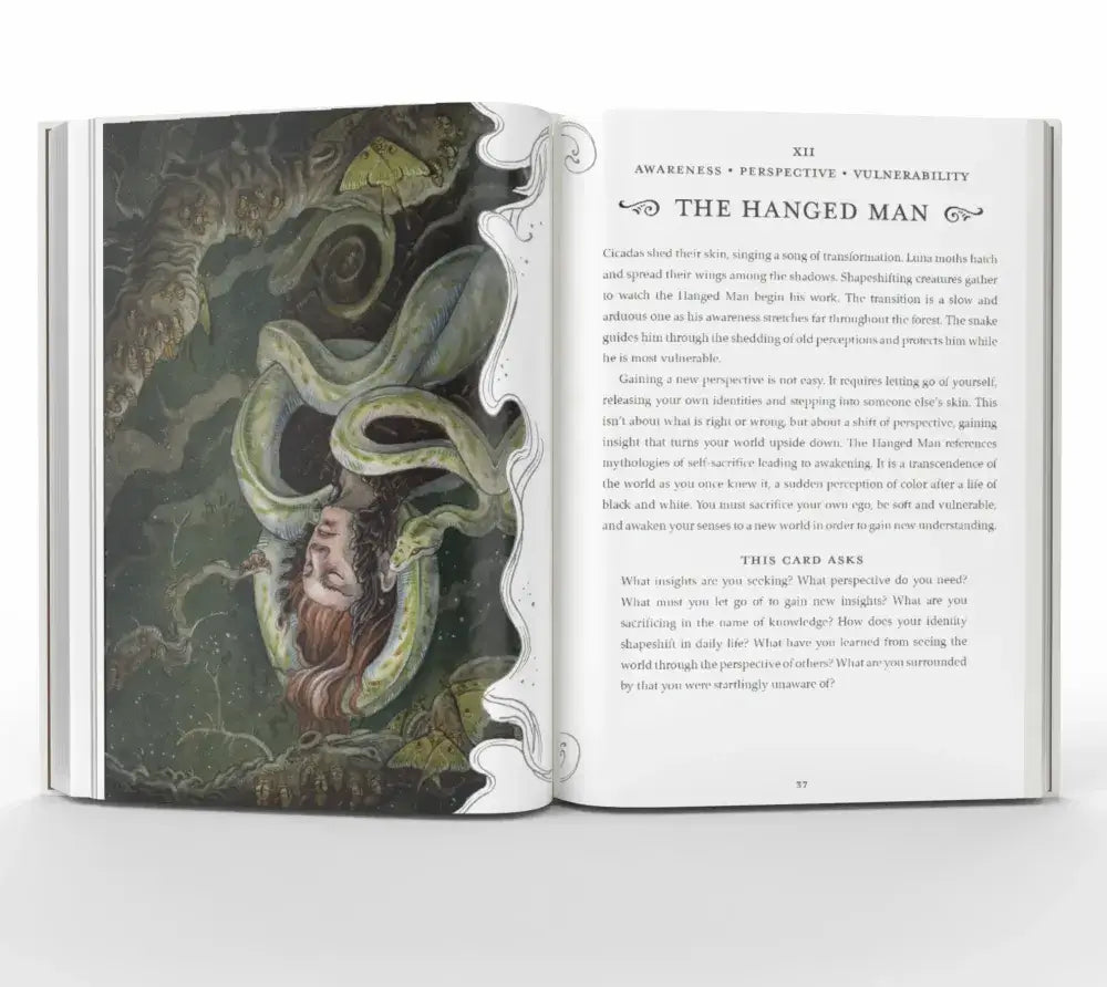 Instead of relying on rigid, traditional symbolism, each card functions as its own visual scene where meaning unfolds through observation, mood, and your personal associations. The Minor Arcana uses four original suits—Dreams, Songs, Skins, and Honey—expanding the emotional and sensory language of the cards beyond standard Wands, Cups, Swords, and Pentacles.