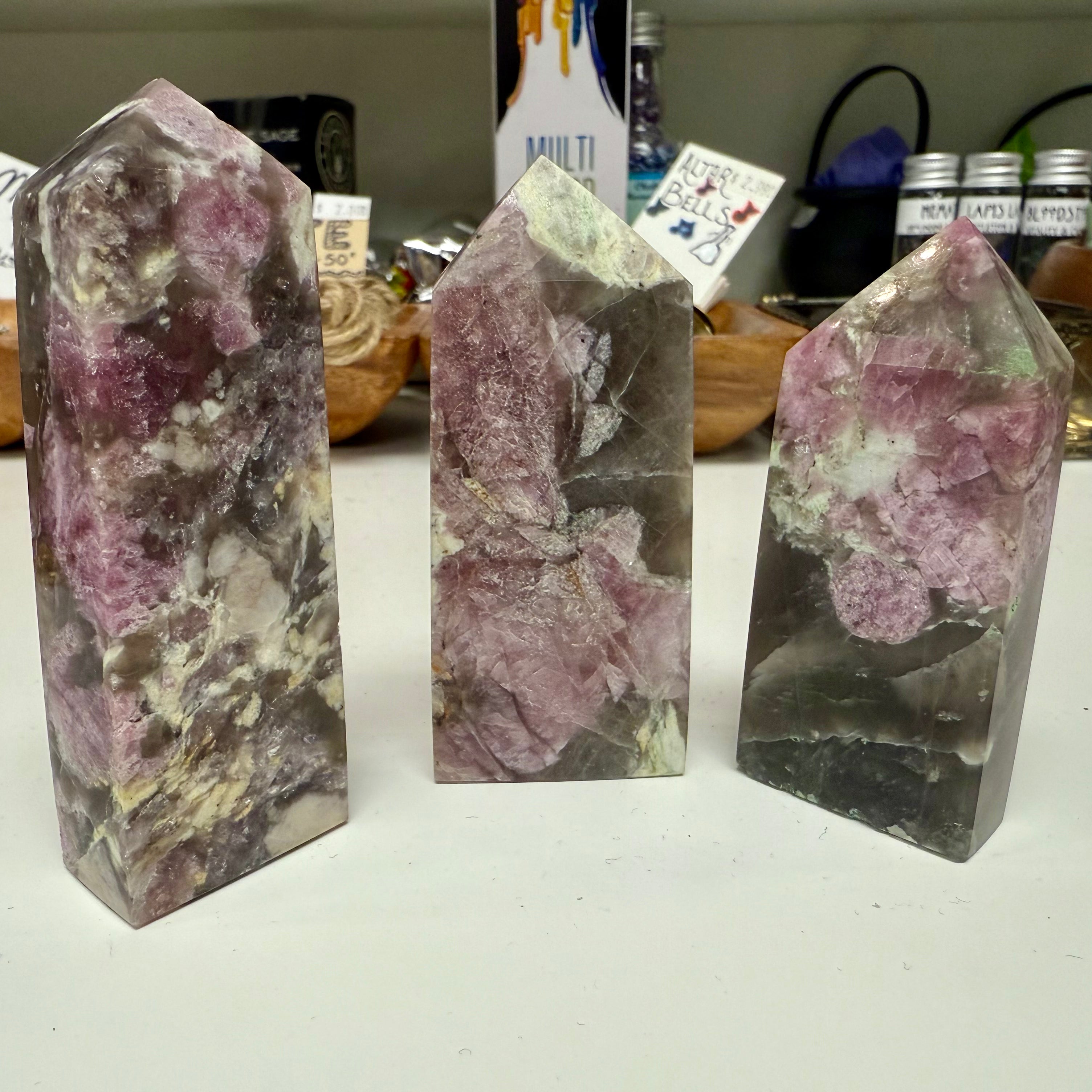 Ourย Pink Tourmaline Gemstone Points (approx. 2.75โ3.5") are polished into 4-sided standing obelisks โ perfect for display, crystal grids, meditation spaces, or altar decor.