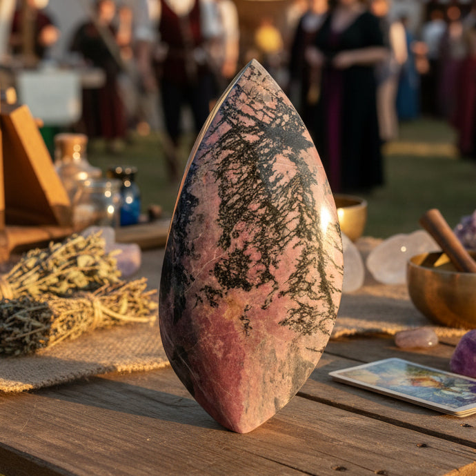 Known as the Stone of Forgiveness, Rhodonite is often associated with emotional healing, compassion, and heart chakra balance. Its deep, dark pink tones are believed to support releasing old wounds, fostering self-love, and encouraging emotional clarity. The flame shape enhances this symbolism—representing rebirth, renewal, and the courage to move forward.