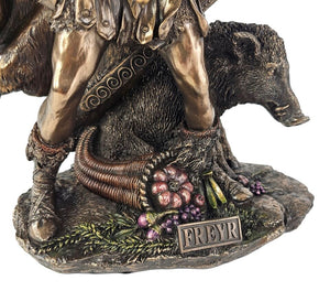 Standing 10.75 inches tall, this hand-painted masterpiece captures Freyr's warrior-king essence, complete with his legendary sword, Gullinbursti the boar, and a cornucopia symbolizing prosperity. A stunning decoration and a meaningful gift for mythology enthusiasts.
