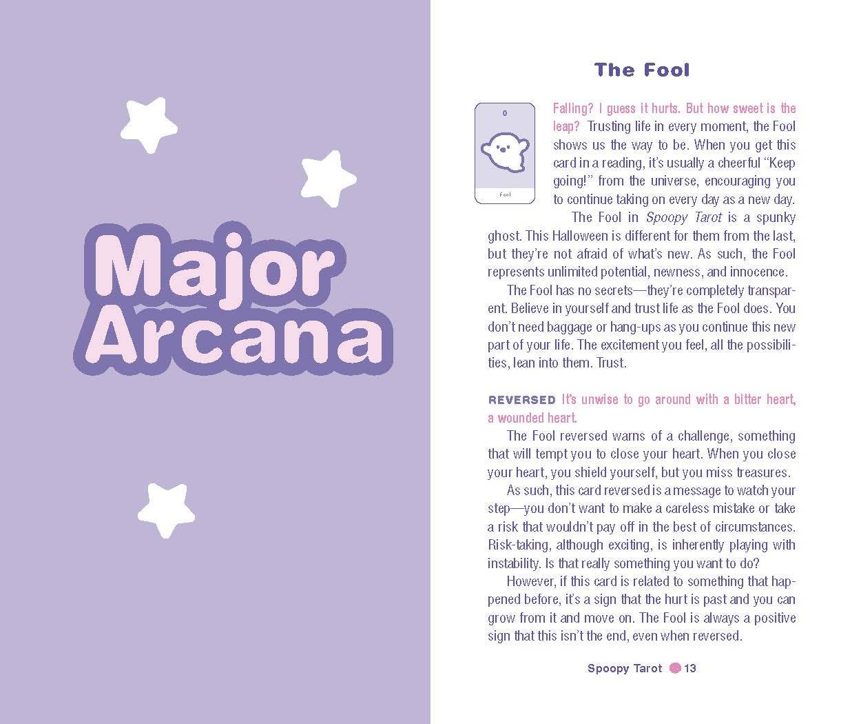 Spoopy Tarot is a kawaii treat for all the spooky season tricksters, featuring the classic tarot deck reimagined with cute li'l ghosts, nasty witches, and other fun stuff that goes bump in the night. Instead of the fool's journey, Spoopy Tarot follows a spirit floating through a haunted house, encountering 78 extremely adorable versions of traditional tarot archetypes in the major and minor arcana.