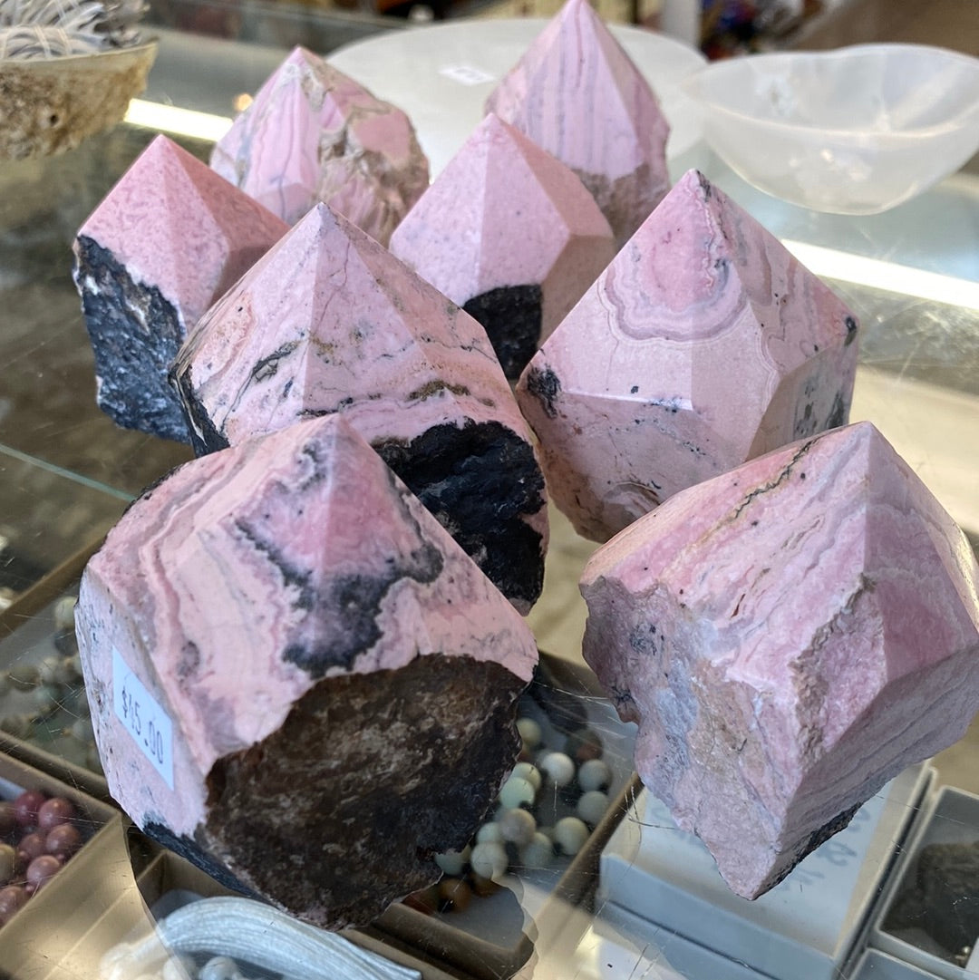Rhodochrosite is a powerful heart healer, cooling emotional heat and providing insight into issues. It allows one to recover one's sense of playfulness and joy of life, and is very healing for the ‘inner child’. Rhodochrosite is an excellent anti-stress, anti-anxiety stone.