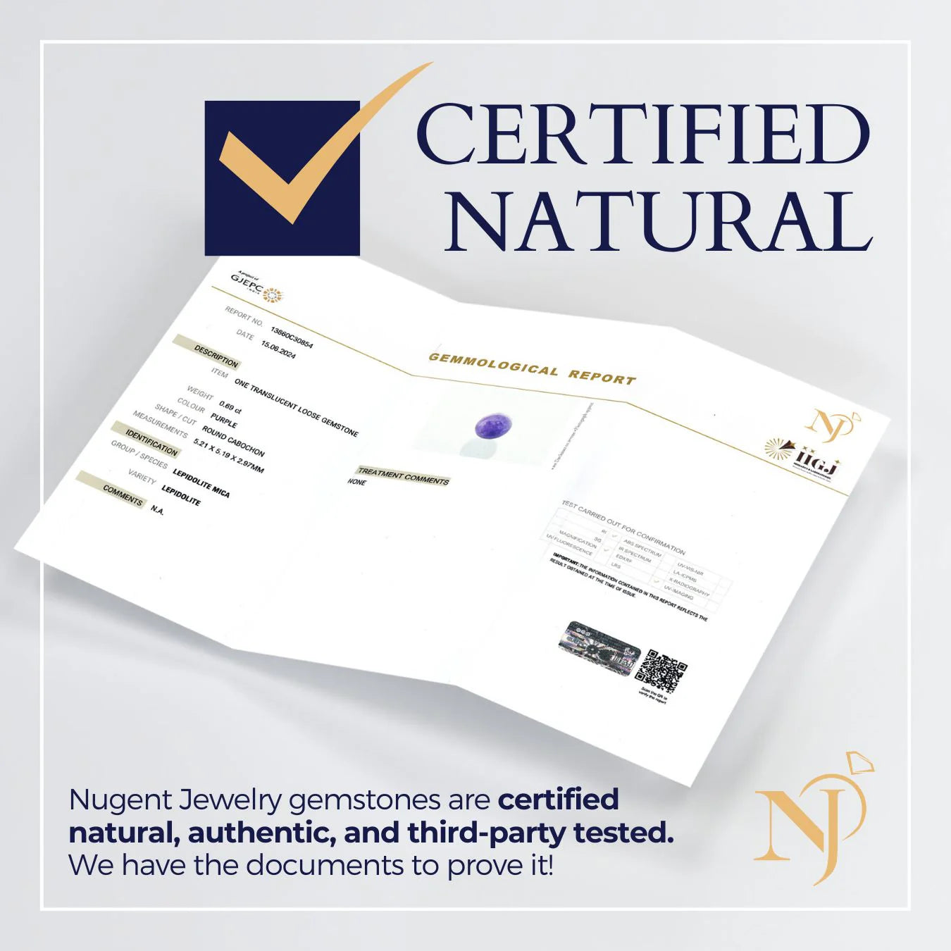 • Ethically sourced, third-party certified natural Lepidolite gemstone