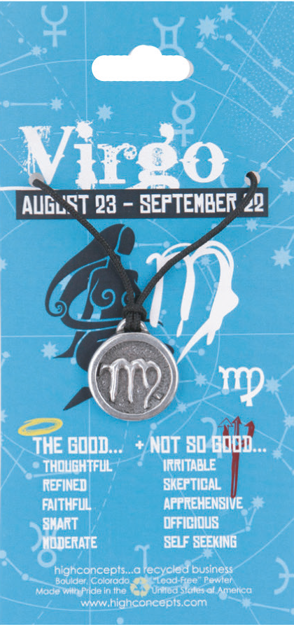 Zodiac Virgo Pewter charm on attachment with backer card. Made in the USA. Charm is .875" x .75"