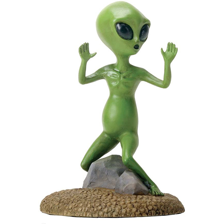 • This UFO Alien Caught In The Act Figurine stands at 4.5" tall, 3.25" long, and 3.25" deep approximately.