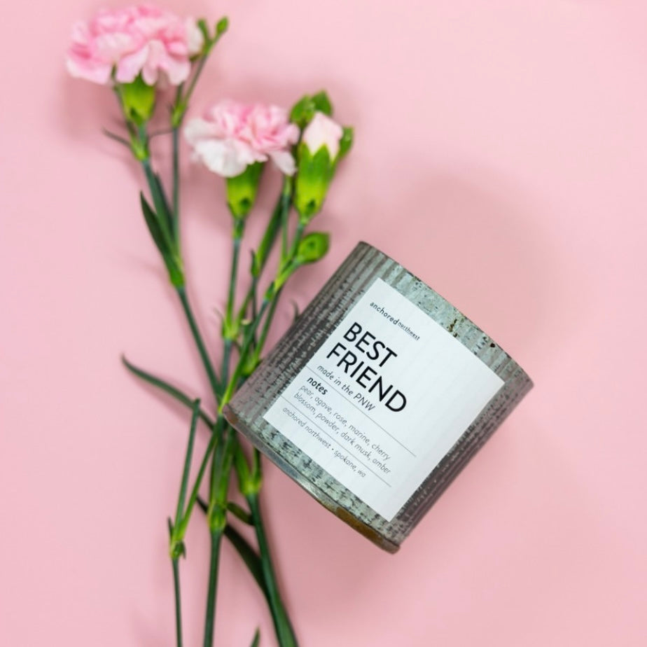 The wood wick, triple scented, soy wax candles are hand poured in Spokane, WA. They use real ingredients in these candles - fragrance oils infused with essential oils, American-grown soy wax, and untreated cedar wood wicks.
