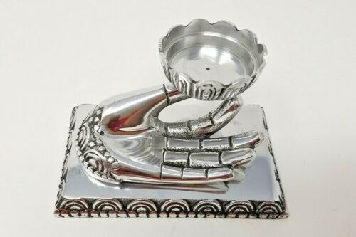 Beautiful antique finish Silver Toned Incense stick/cone/TEA LIGHT CANDLE Holder. This burner is great for your altar or decoration piece. The hand lays upon a 3" x 5" base and Thumb holding a raised Lotus incense burner/TEA LIGHT CANDLE HOLDER