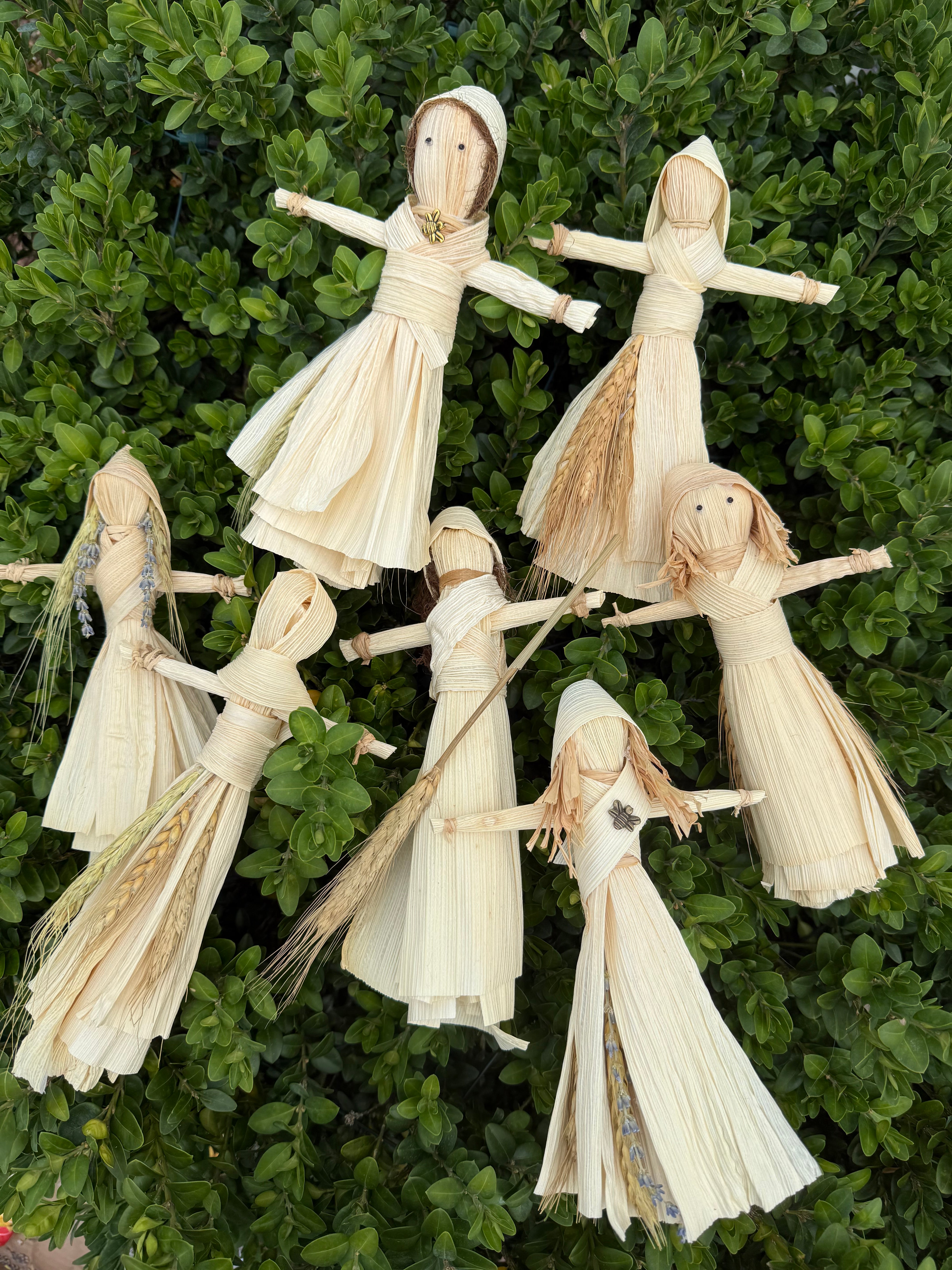 Our Handmade Corn Husk Dolls are made In House by Cast a Stone! Great for protection and offerings, these dolls are all made by hand and with love. No two are alike! The price is for one doll. Sizes are approximate - 8"-10" Made of Corn Husk, Dried Herbs and various adornments.
