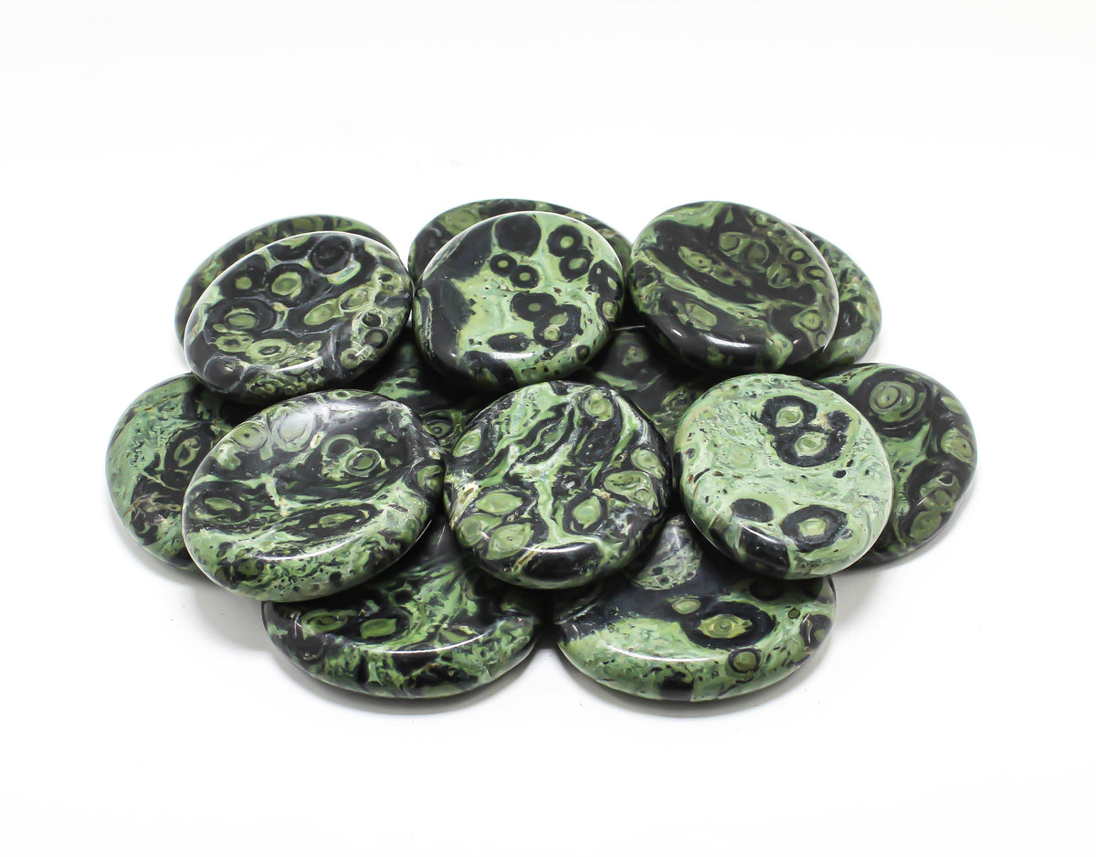Tap into the serene, grounding energy of Kambaba Jasper, a gemstone revered for its soothing deep green and black swirling patterns. Hand-polished into a smooth worry stone, this unique piece fits comfortably in the palm of your hand—ideal for meditation, stress relief, or carrying as a grounding talisman.