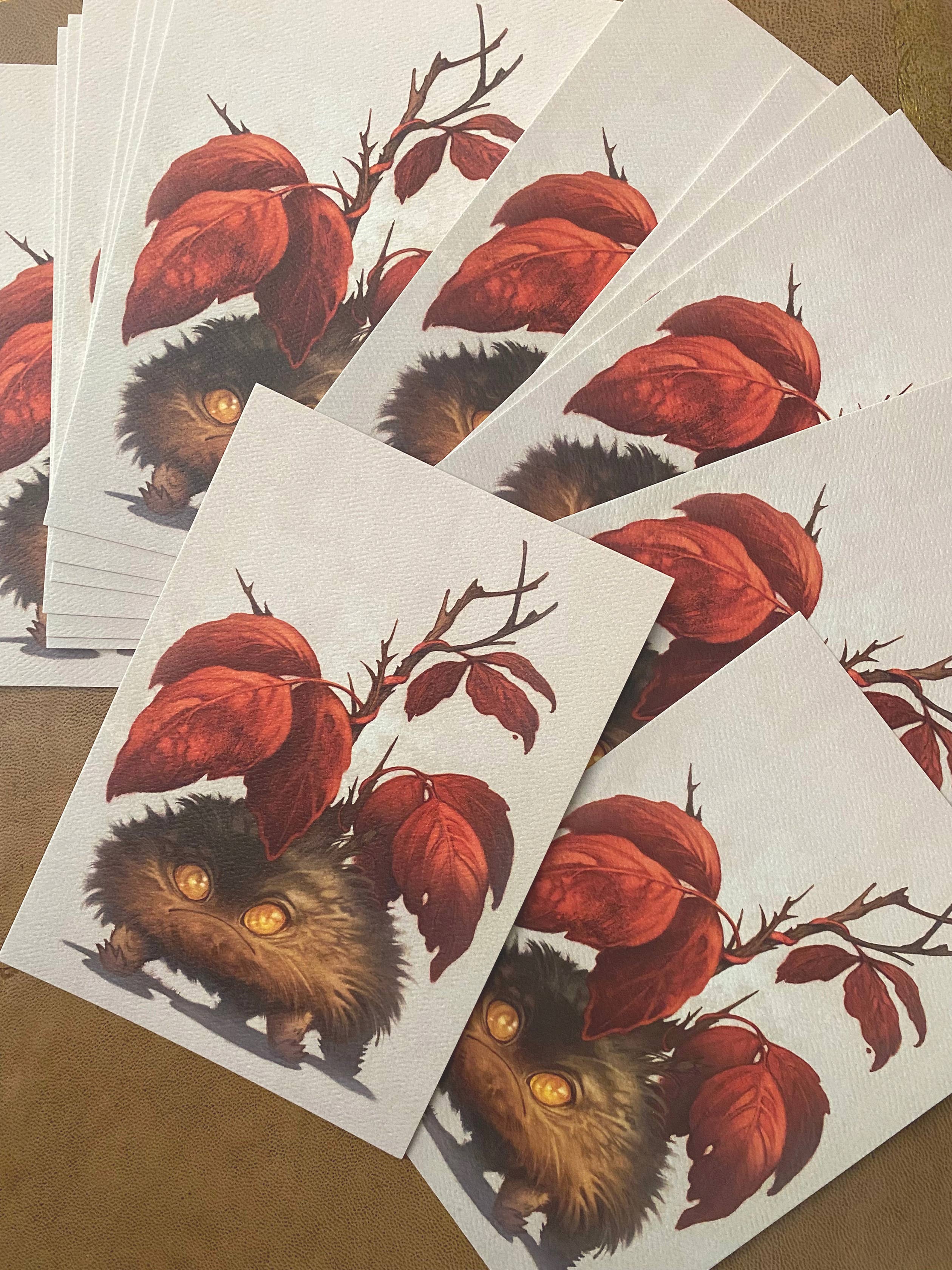 High-quality, archival print on beautifully textured watercolor paper. Total size is 5" X 7" This print is signed and packaged in a clear plastic sleeve with a cardboard backer.