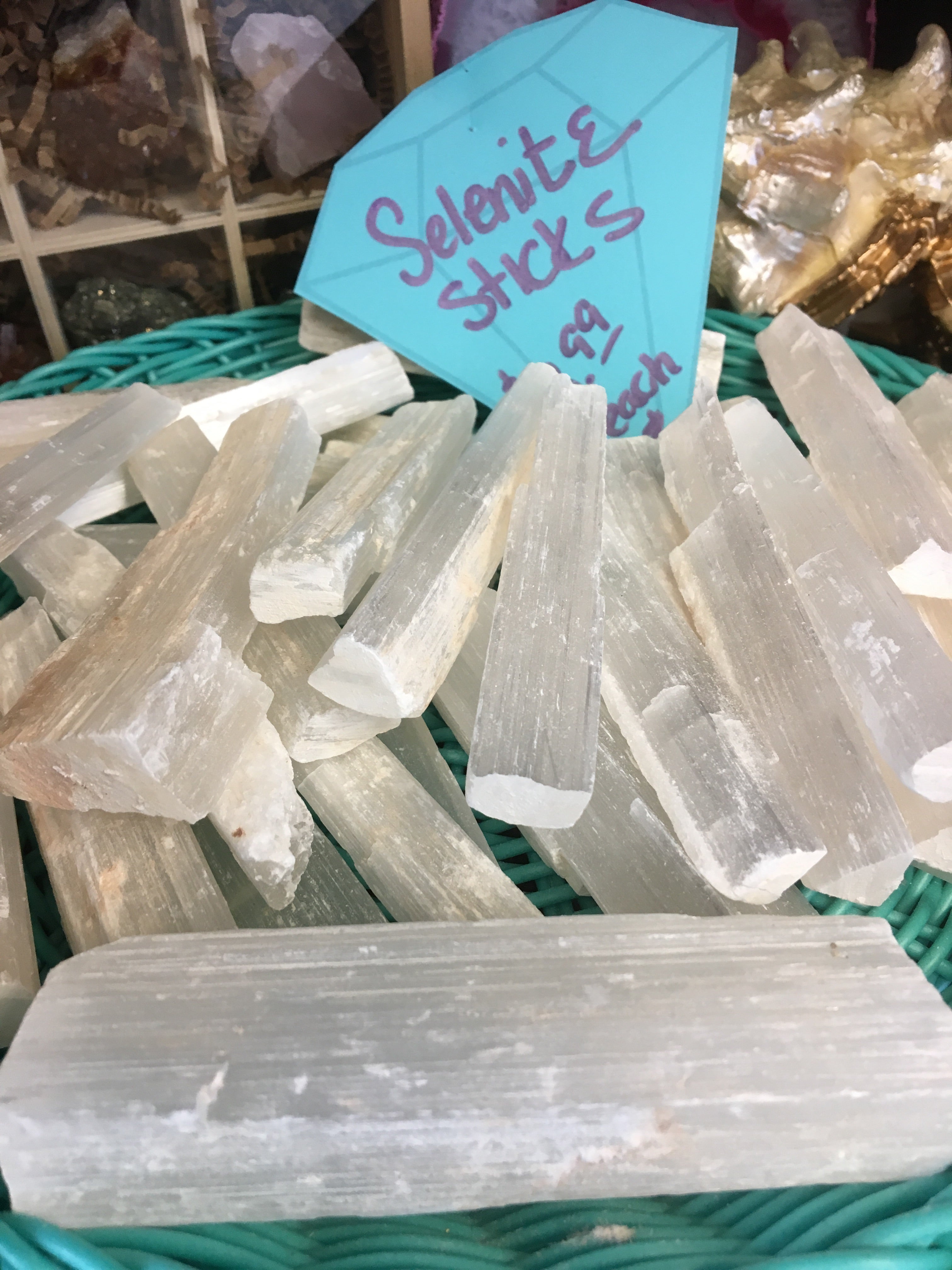 Selenite was named from the Ancient Greek word selene meaning moon, in ancient times people believed that certain transparent stones waxed and waned with the moon. Selenite refers exclusively to the transparent and colorless form of gypsum. It is best to cleanse these crystals with a smudge stick or singing bowl as it will dissolve if placed in water.