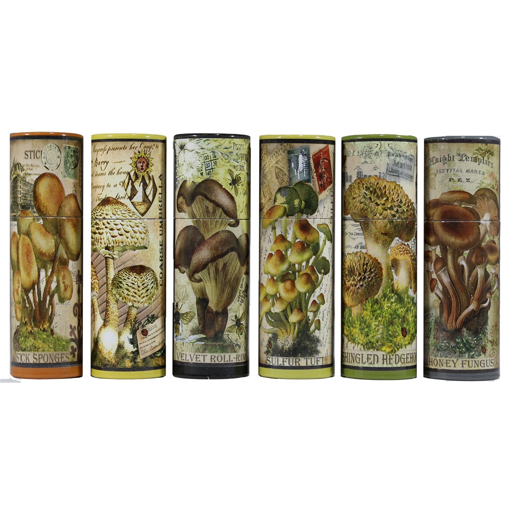 Add a touch of vintage charm to your space with our Vintage Mushroom Illustration Match Tube! Each tube features one of six unique vintage-inspired mushroom illustrations, selected at random, making every purchase a delightful surprise.